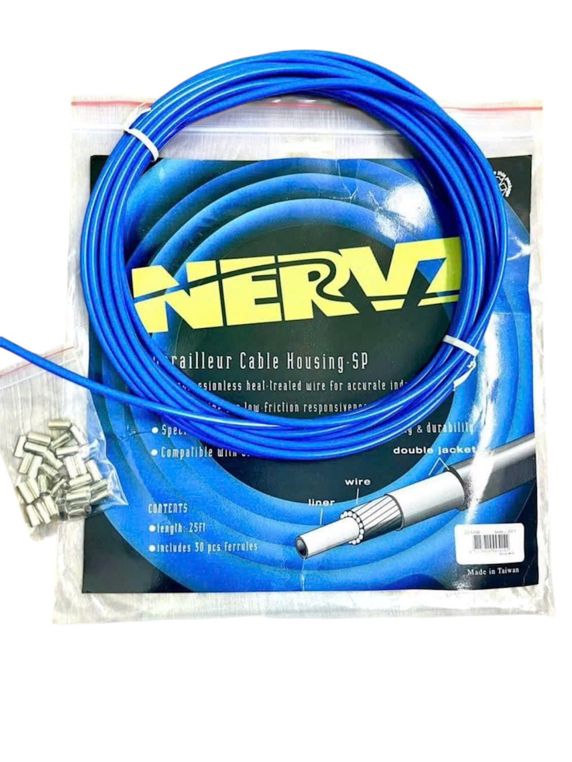 Vỏ bọc NERVZ cho cáp phanh và bộ chuyển số, cuộn 8m với 30 nút chặn bằng nhôm